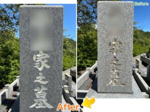 下関市綾羅木町にてお墓じまい。墓石解体と、海洋散骨に向けた粉骨等のお手伝い