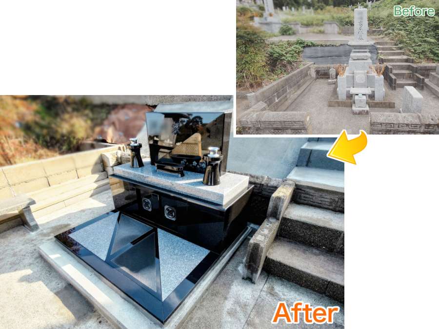 下関市王司地区のいやが迫墓地にて、昔ながらのお墓の建て替え。デザイン墓石カーサメモリアをアレンジ