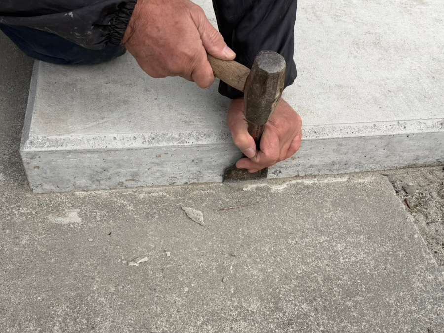 枠から少しはみ出したコンクリートはきれいに取り除きます。