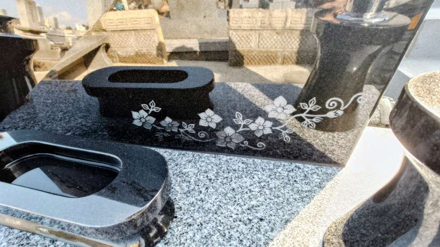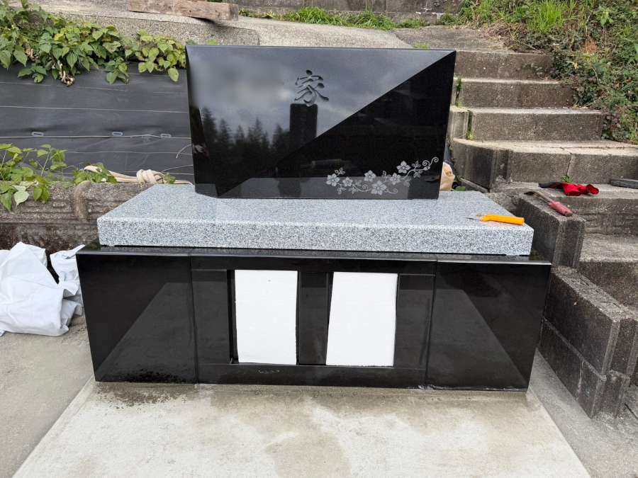 開眼供養にも立ち会わせていただきました。お客様に「立派なお墓ができて嬉しい」と大変喜んでいただけました。黒御影石の鏡面のようなつややかな美しい仕上がりもとても気に入ってくださり、「掃除もしやすくなって、お花立ても使いやすくなった」と、機能面でもご満足いただけたようです。お客様もお仕事を一緒にされている息子様がいらっしゃるそうで、私と一緒に現場に来ていた息子にも「これからも頑張ってね」と温かいお言葉をいただき、お気持ちがとてもうれしかったです。この度は、大切なお墓の建て替えを当社にご用命いただきまして、本当にありがとうございました。デザイン墓石は近年人気が高まっており、当社でもカーサメモリアをはじめとしたデザイン墓石の建立は増えています。今回の工事に息子も携わらせていただいて、貴重な経験をさせていただきましたことも、大変ありがたく思っております。当社でお手伝いできることがございましたら、どうぞいつでもお気軽にご連絡ください!