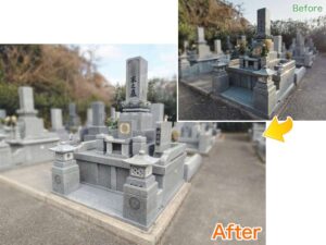 当初は草刈りもお手伝いするお話がありましたが、「最後は自分たちの手できれいにして送り出したい」と、お客様ご家族で草刈りをしてくださいました。とても立派な和型墓石で、山口県産の銘石 徳山石で建てられていました。現地確認を行ってお見積りを差し上げ、工事をお任せいただけることになりました。